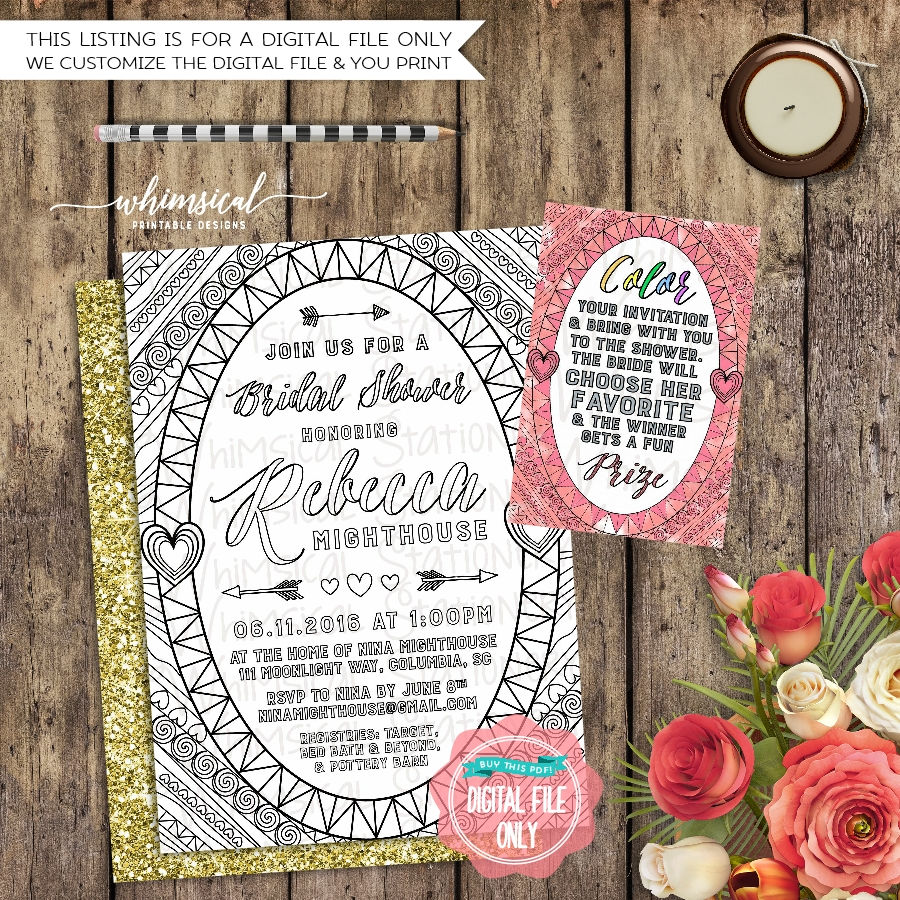 "Coloring Pages, Tribal" Printable Bridal Shower Invite
