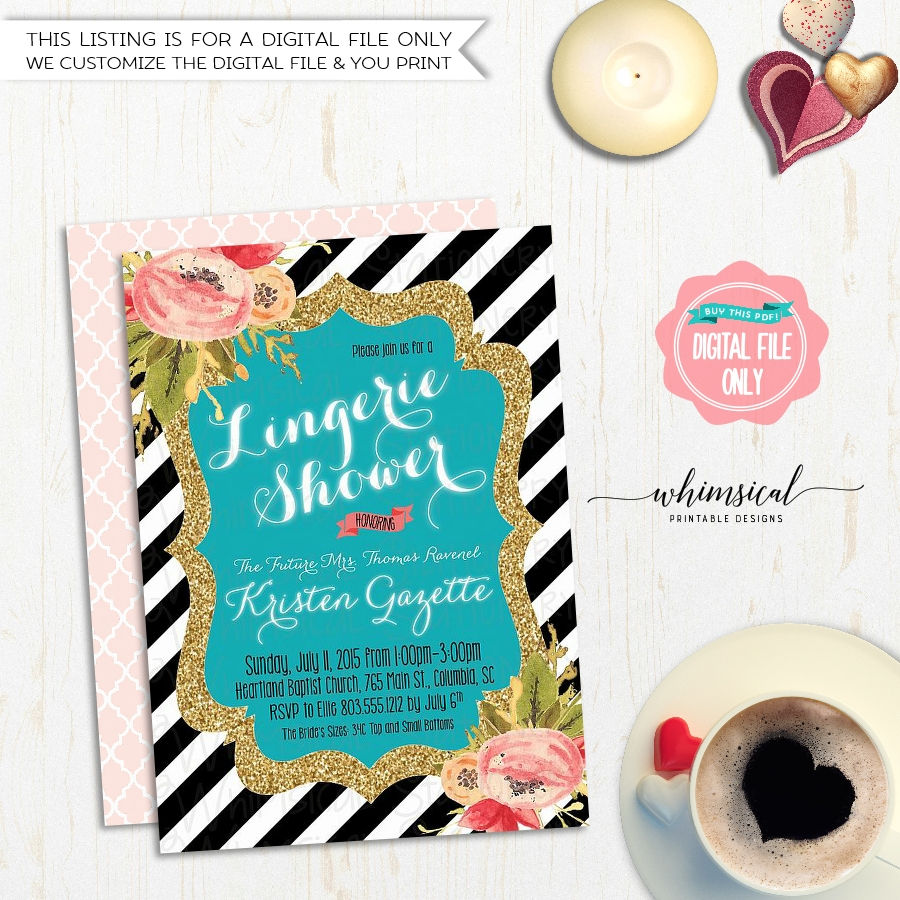 "Black Striped Bokeh" Printable Lingerie Shower Invite